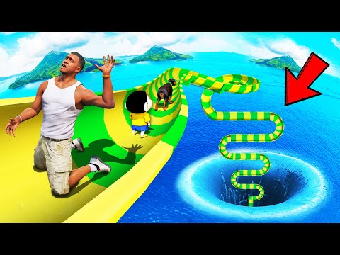 SHINCHAN AND FRANKLIN TRIED THE CURVY ZIGZAG SUMMER WATERSLIDE DEEPEST HOLE CHALLENGE GTA 5 …